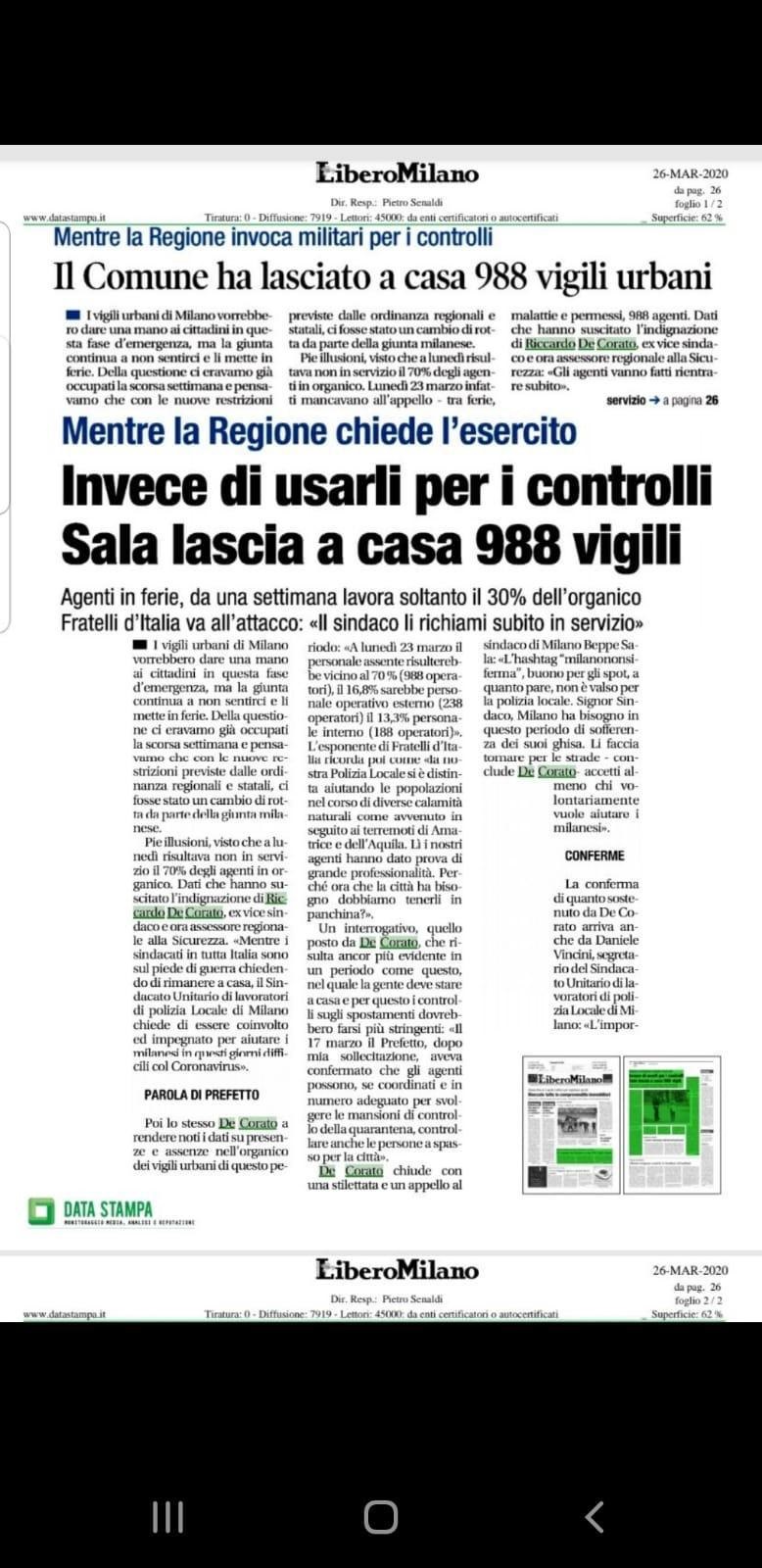 I vigili urbani di Milano vorrebbero dare una mano ai cittadini in questa fase d'emergenza, ma la giunta continua a non sentirci e li mette...